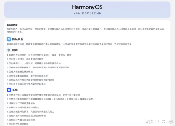 可以说从版本迭代路径来看,6.0.0.115 SP7延续了鸿蒙系统 “设备即服务” 的核心理念,通过图库、文件管理等模块的深度优化,持续强化多端数据流转的一致性。